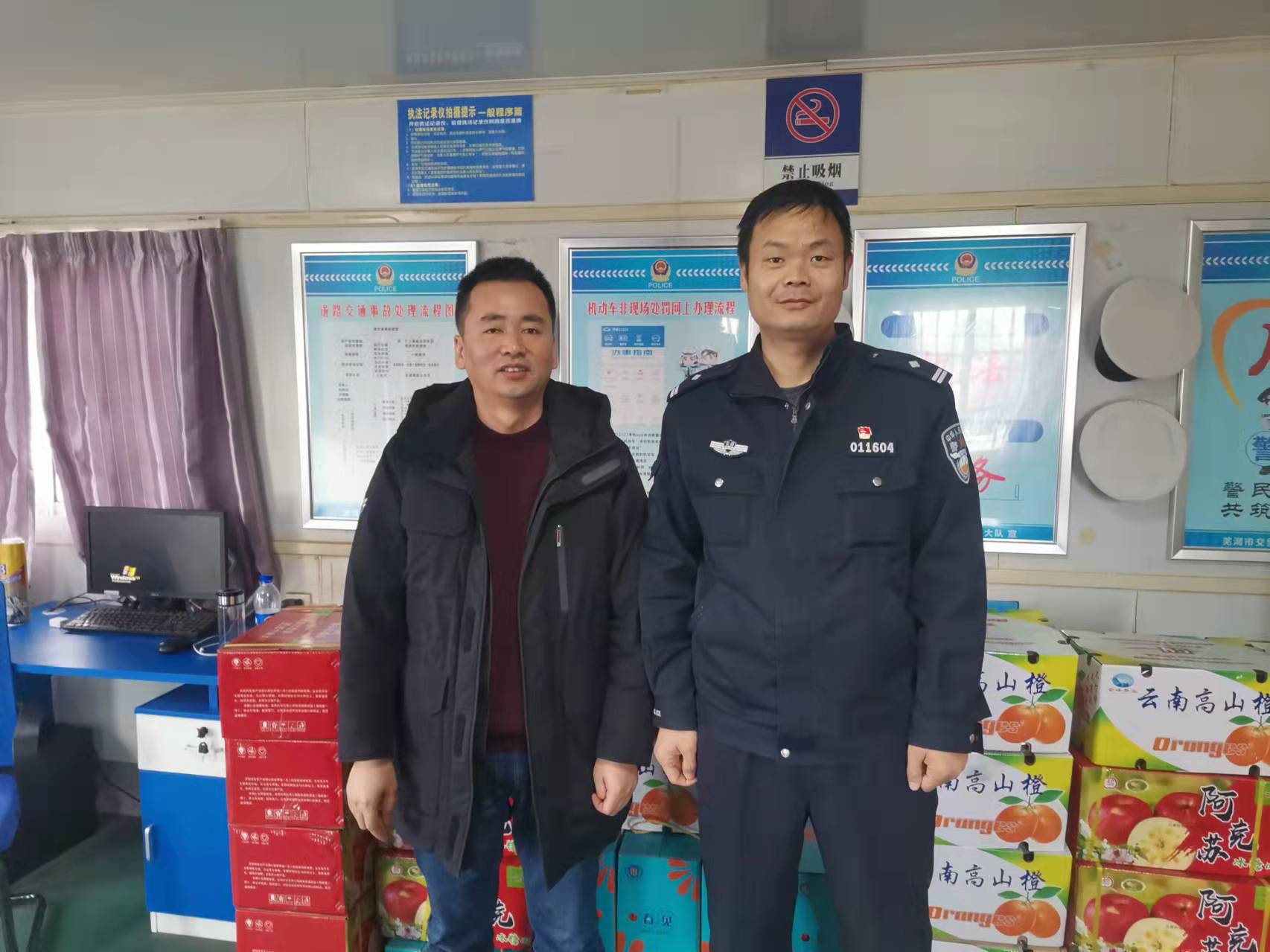 去年以來(lái),為確保社會(huì)安定幸福,轄區(qū)派出所、交警隊(duì),以及消防、城管等部門(mén),履職盡責(zé),為群眾的美滿生活始終保駕護(hù)航,為企業(yè)的發(fā)展創(chuàng)造了穩(wěn)定、有序的營(yíng)商環(huán)境。春節(jié)臨近,安徽二環(huán)石油集團(tuán)有限公司組織員工,對(duì)他們進(jìn)行節(jié)日走訪慰問(wèn),并送上水果飲料等慰問(wèn)品,祝他們節(jié)日快樂(lè)、工作順利。